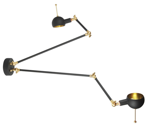 The Acrobat wall lamp series has three versions, they are all small and cute. The head piece can rotate 360°. Acrobat has a spherical head piece with manipulable metal arms. It can be used on walls or ceilings. The Acrobat series is manufactured from copper and brass. If desired, it can be powder coated in RAL colors. The reflector of the head piece is left unpainted and polished, so the light takes the color of the material. |