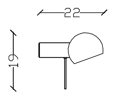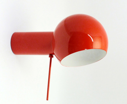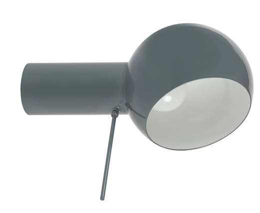 | This wall lamp has two parts, one maneuverable and the other fixed. The fixed part is a metal cylinder carrying a E14 socket; the maneuverable part is a wider outer cylinder which can rotate 360° on the inner part. This outer part has at its end an angulated metal sphere. The metal rod attached to the outer cylinder moves through the groove on the inner part and allows the sphere to be turned 360° or fixated. |