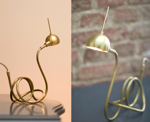 Swan is made of hand shaped brass tube which is given the shape of a stilized swan. It can be used as a wall lamp or a table lamp. The light source can beturned towards the desired direction by the help of its manipulable head. The lamp with its unique statue form can be made of nickel coated brass. |